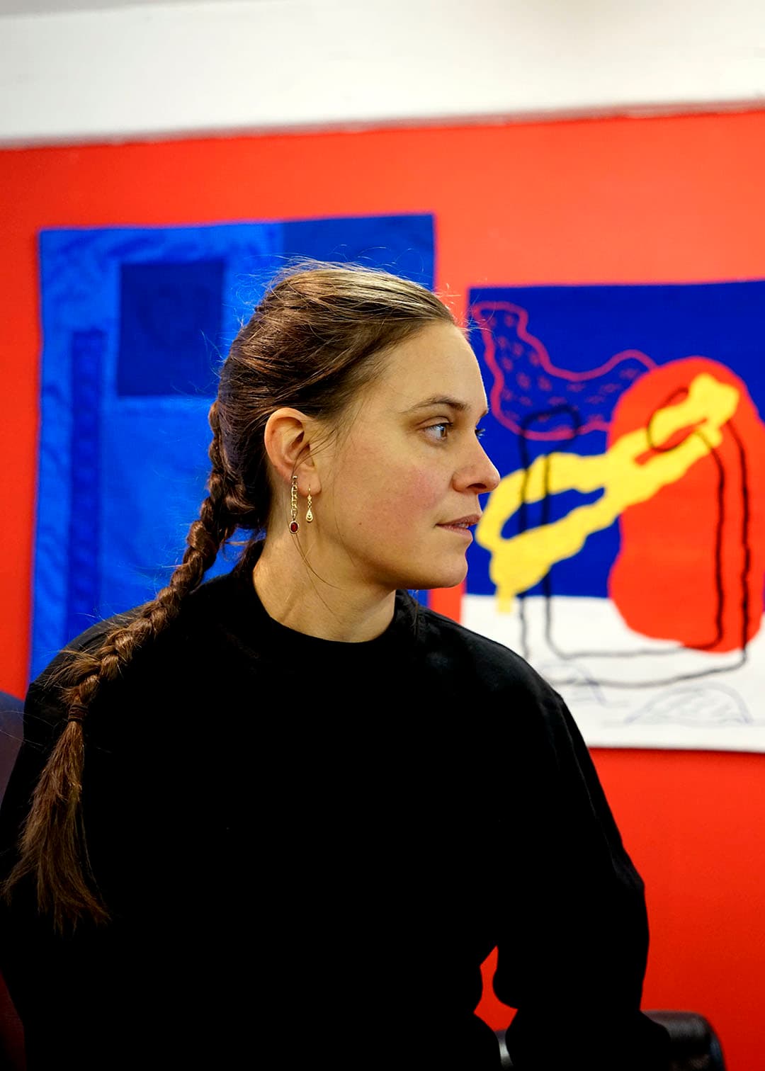 My work consists mainly of textile installations. My compositions are functional while carrying narratives. Through the use of "appliqué", quilting, embroidery or tapestry, I recreate a world strewn with clues and traces, symbols, sometimes logos and references drawn from the popular imagination and from my own memories.
