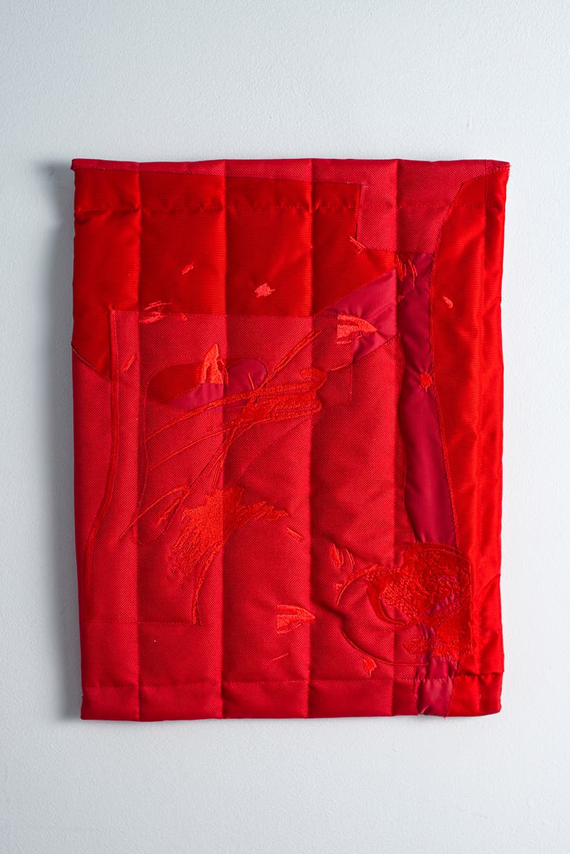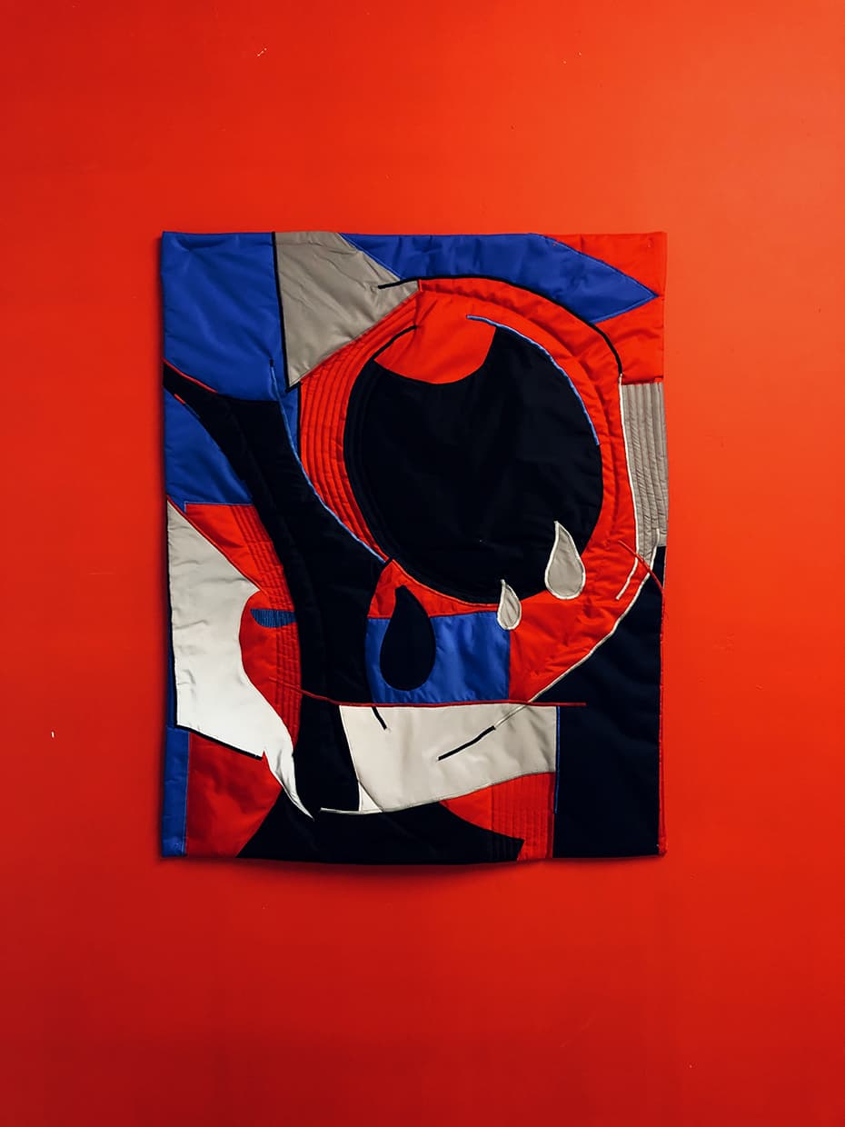 Nénie, waterproof fabric, lithography, embroidery, metal stick, 30x35cm, Brussels (BE), Spring 2017